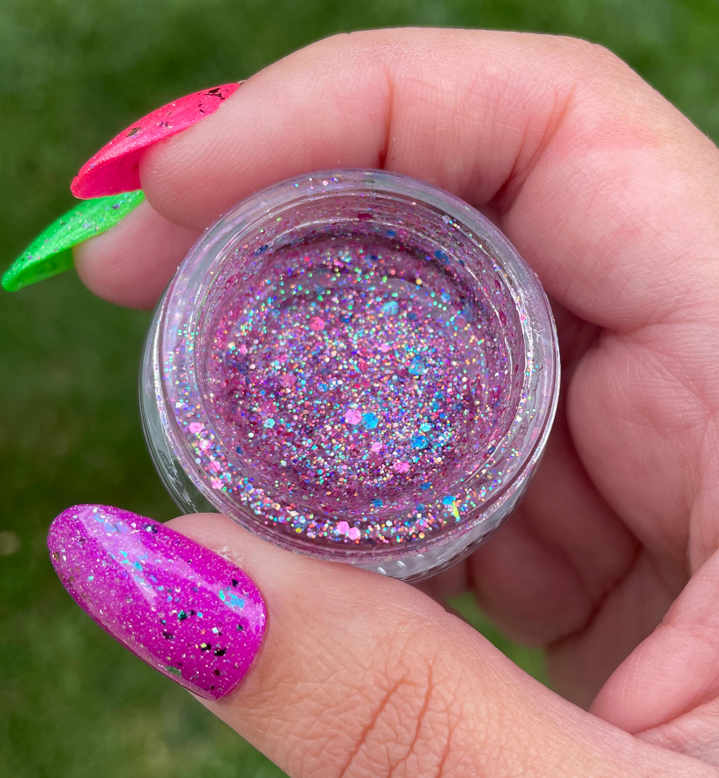 Never Had Any Bubblegum to Begin With: a bright bubblegum pink sparkly neon shimmer.