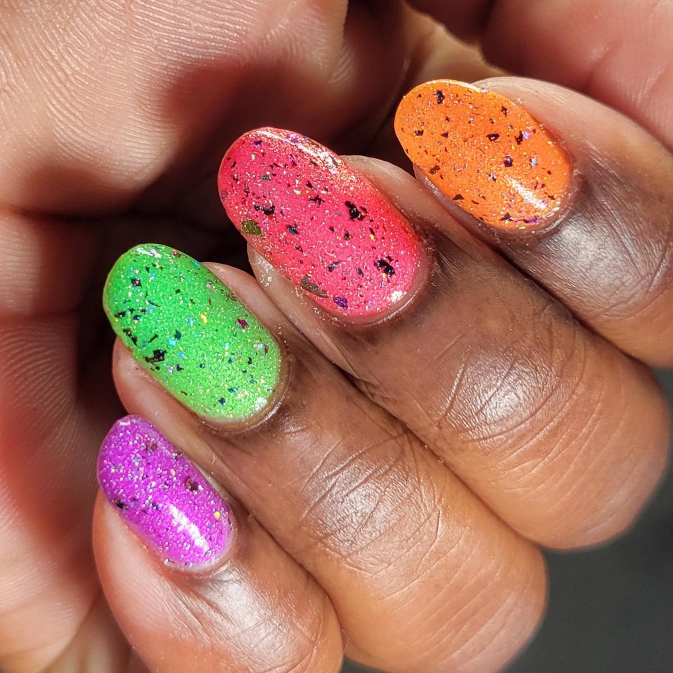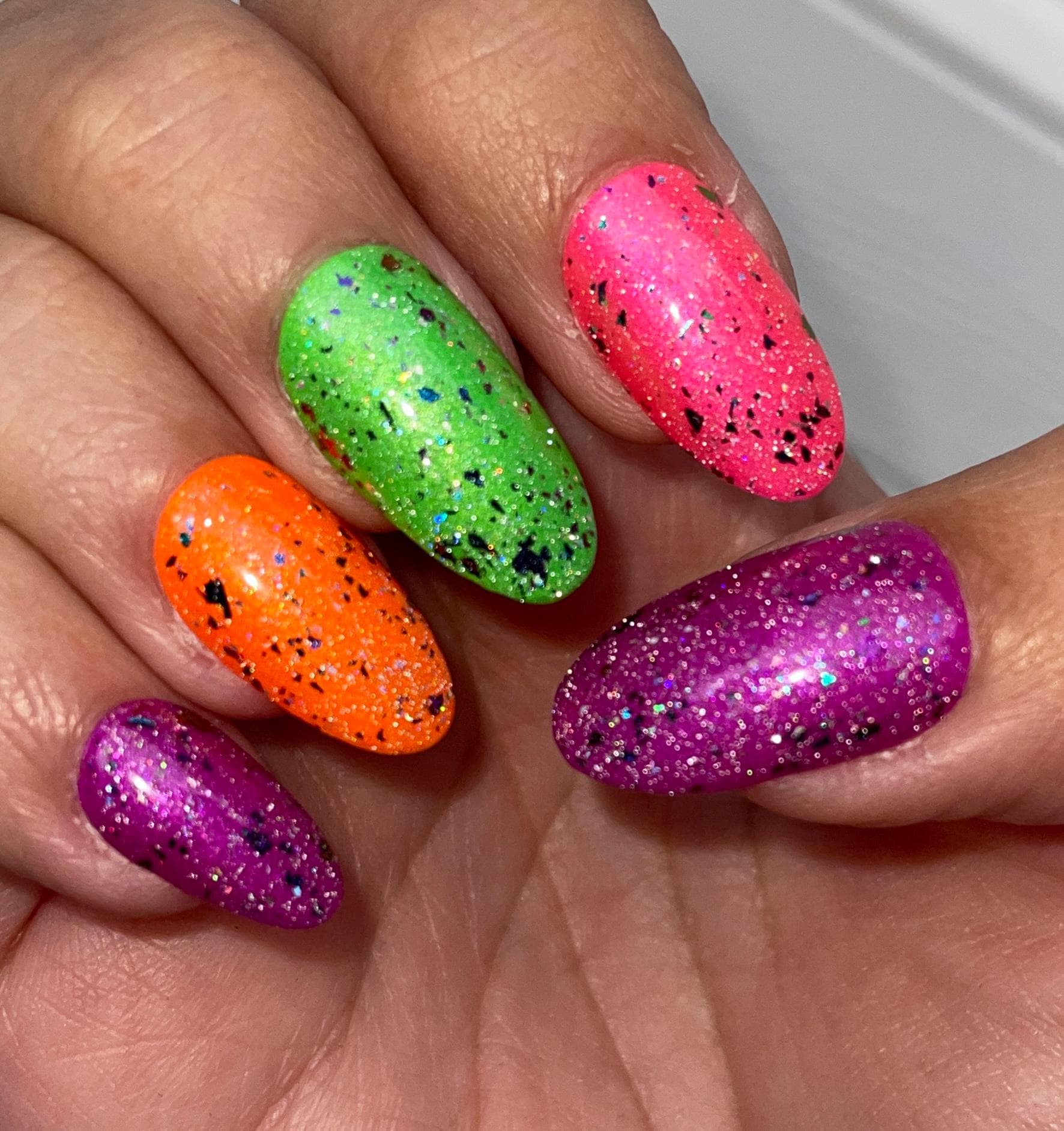 Multichrome Holo Reflective Glitter: a shimmery sparkly topper full of multichrome flakes, scattered holo, and, you guessed it, reflective glitter.